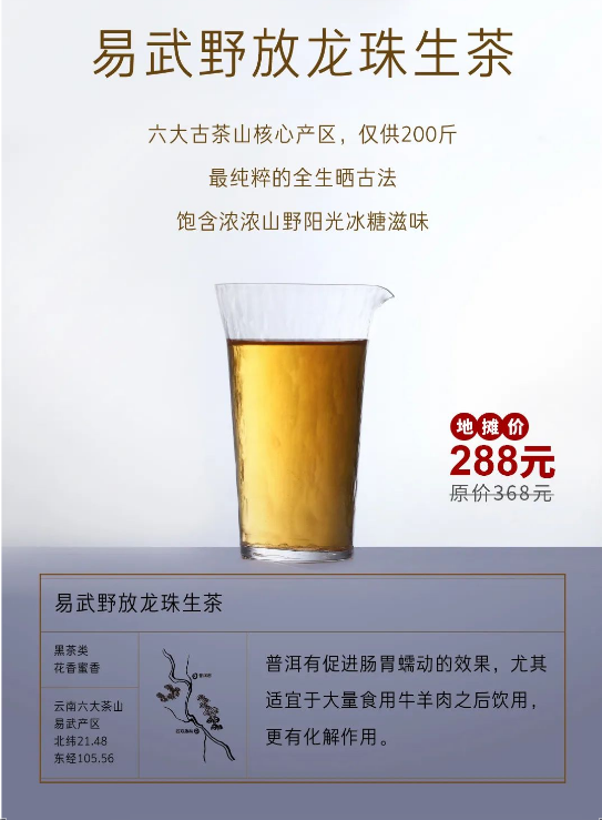 / 6月的主推产品是生普, 我们在之前的推文中就介绍过生普是 当下季节非常适合品饮的一款茶, 这款2018年易武龙珠专门拼配了古树料, 香气更好,滋味的层次感更丰富, 耐泡度更高! 而上面提到的400克饼茶更有几个年份可选, 满足您的“好奇心”。 / 摊位已摆好, 请大家移步至“国茶直选”小程序进行挑选。